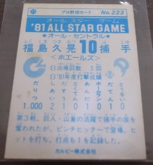 カルビープロ野球カード1981年/No223福島久晃/大洋ホエールズ/オールスターゲーム